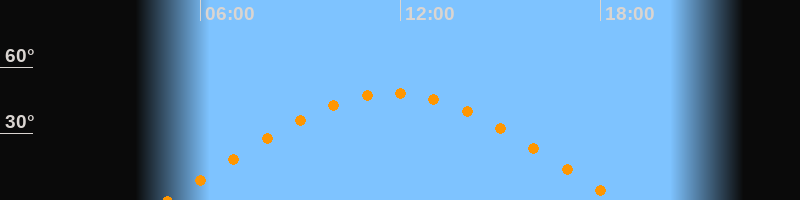 | Höchster Stand (Kulmination) | 11:45 Uhr (h = 48,2°) |