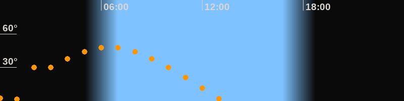 | Höchster Stand (Kulmination) | 06:30 Uhr (h = 48,2°) |