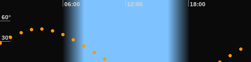 | Untergang | 10:32 Uhr im Westen (αAz = 284,9°) |