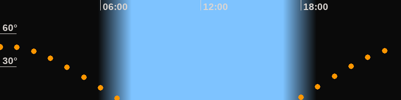 | Aufgang | 17:38 Uhr im Osten (αAz = 75,1°) |