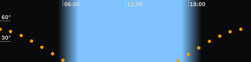 | Aufgang | 16:43 Uhr im Osten (αAz = 75,1°) |