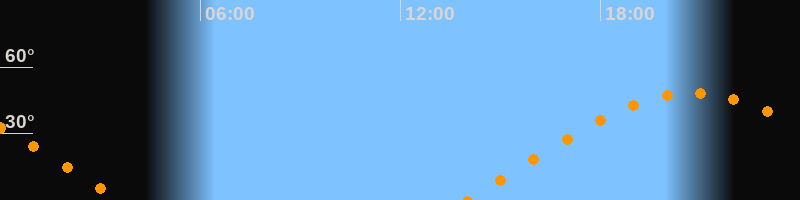 | Aufgang | 14:00 Uhr im Osten (αAz = 75,1°) |