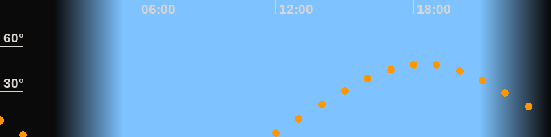 | Höchster Stand (Kulmination) | 18:25 Uhr (h = 48,2°) |