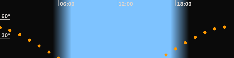 | Aufgang | 16:25 Uhr im Osten (αAz = 75,1°) |