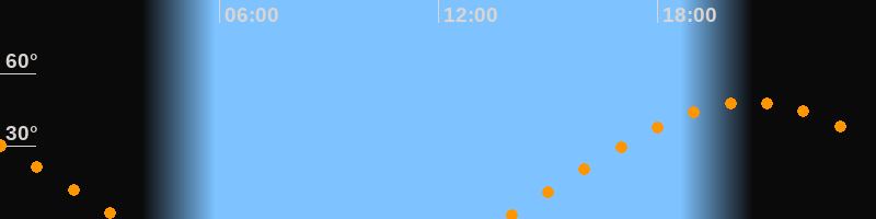 | Aufgang | 13:44 Uhr im Osten (αAz = 75,1°) |