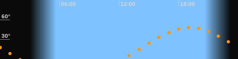 | Aufgang | 12:20 Uhr im Osten (αAz = 75,1°) |