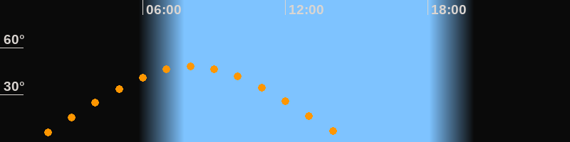 | Höchster Stand (Kulmination) | 08:03 Uhr (h = 48,2°) |