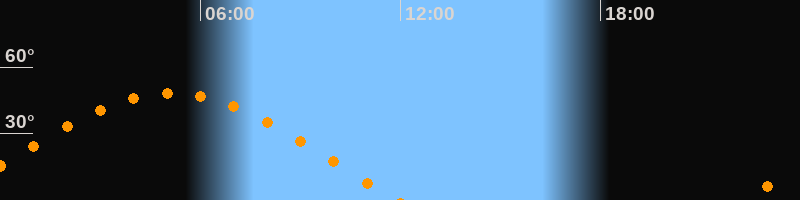 Höchster Stand (Kulmination)05:07 Uhr (h = 48,2°)