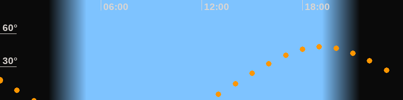 | Höchster Stand (Kulmination) | 19:09 Uhr (h = 48,2°) |