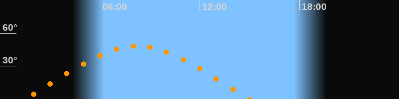 | Höchster Stand (Kulmination) | 08:14 Uhr (h = 48,2°) |