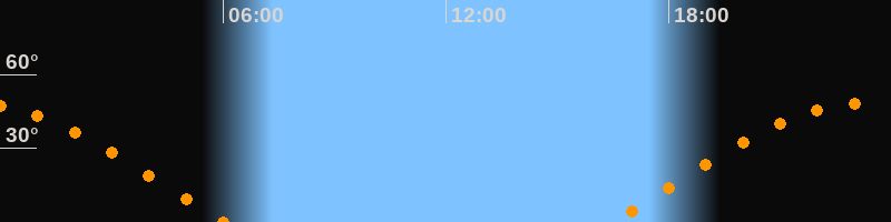 | Höchster Stand (Kulmination) | 23:14 Uhr (h = 48,2°) |