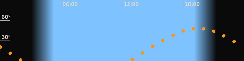 | Höchster Stand (Kulmination) | 19:25 Uhr (h = 48,2°) |