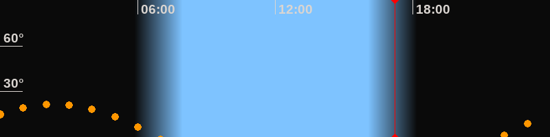 | Aufgang | 21:47 Uhr im Südosten (αAz = 117,6°) |