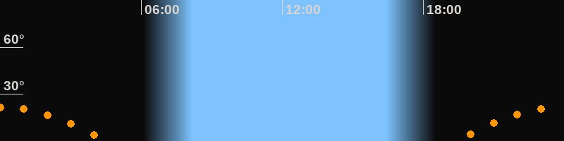 | Aufgang | 19:23 Uhr im Südosten (αAz = 117,6°) |