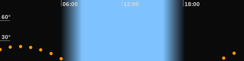 | Aufgang | 21:22 Uhr im Südosten (αAz = 117,6°) |