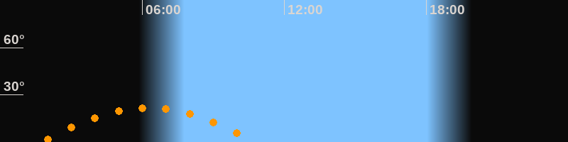 | Höchster Stand (Kulmination) | 06:15 Uhr (h = 21,8°) |