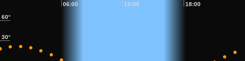 | Untergang | 06:15 Uhr im Südwesten (αAz = 242,4°) |