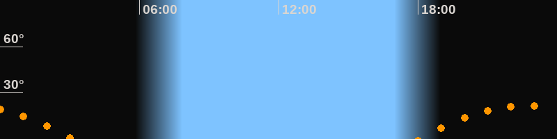| Untergang | 03:11 Uhr im Südwesten (αAz = 242,4°) |