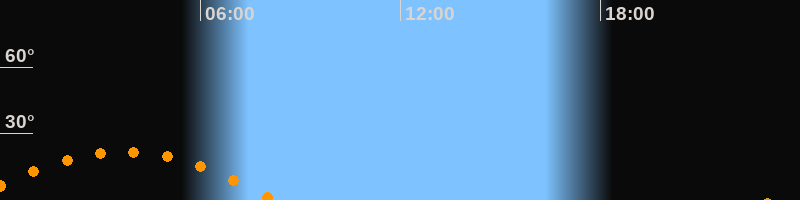 | Untergang | 08:14 Uhr im Südwesten (αAz = 242,4°) |