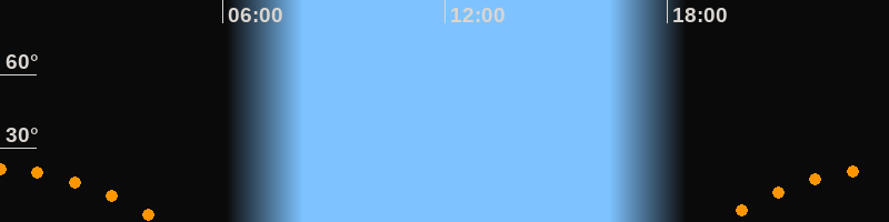 | Aufgang | 19:18 Uhr im Südosten (αAz = 117,6°) |