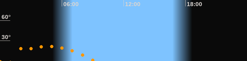 | Aufgang | 00:03 Uhr im Südosten (αAz = 117,6°) |