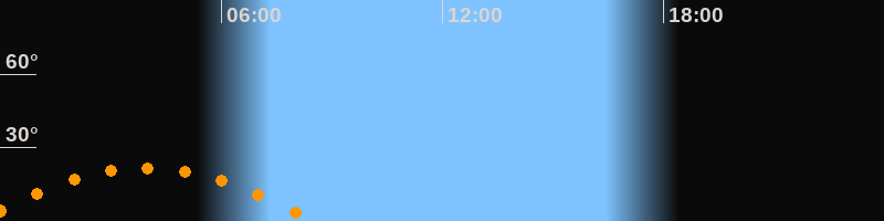 | Untergang | 08:30 Uhr im Südwesten (αAz = 242,4°) |