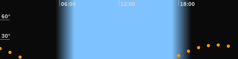 | Untergang | 02:26 Uhr im Südwesten (αAz = 242,4°) |