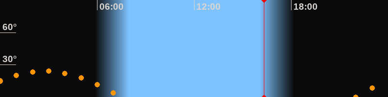 | Untergang | 07:31 Uhr im Südwesten (αAz = 246,6°) |