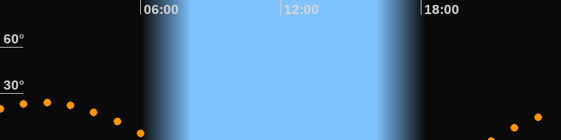 | Untergang | 06:35 Uhr im Südwesten (αAz = 246,6°) |