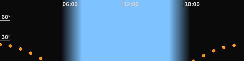 | Aufgang | 18:56 Uhr im Südosten (αAz = 113,4°) |