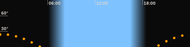 | Aufgang | 19:32 Uhr im Südosten (αAz = 113,4°) |