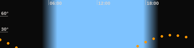 | Untergang | 02:08 Uhr im Südwesten (αAz = 246,6°) |