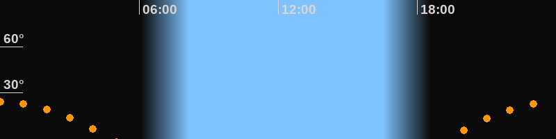 | Höchster Stand (Kulmination) | 00:00 Uhr (h = 24,3°) |