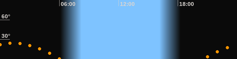 | Untergang | 06:08 Uhr im Südwesten (αAz = 246,6°) |