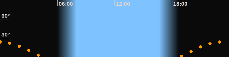 | Aufgang | 18:48 Uhr im Südosten (αAz = 113,4°) |