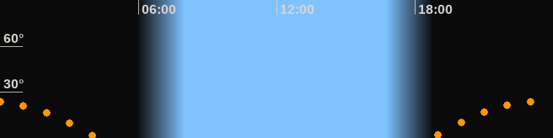| Aufgang | 18:39 Uhr im Südosten (αAz = 113,4°) |