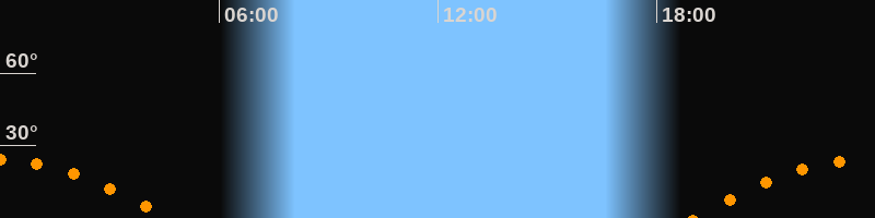| Untergang | 04:37 Uhr im Südwesten (αAz = 246,6°) |