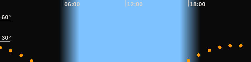 | Aufgang | 17:39 Uhr im Südosten (αAz = 113,4°) |