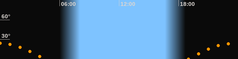 | Aufgang | 18:55 Uhr im Südosten (αAz = 113,4°) |