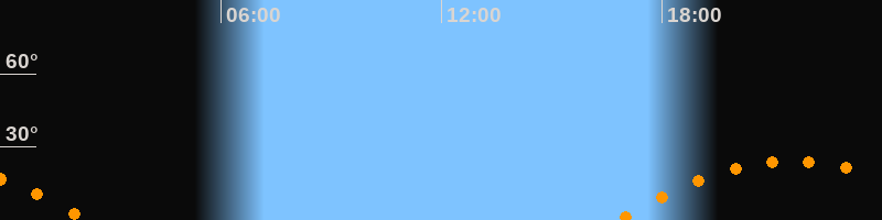 | Aufgang | 16:46 Uhr im Südosten (αAz = 113,4°) |