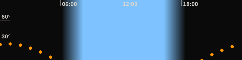 | Untergang | 05:34 Uhr im Südwesten (αAz = 246,6°) |