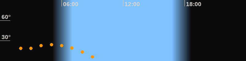 | Untergang | 09:48 Uhr im Südwesten (αAz = 246,6°) |