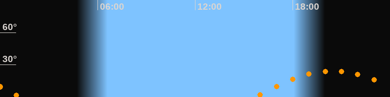 | Untergang | 01:17 Uhr im Südwesten (αAz = 246,6°) |
