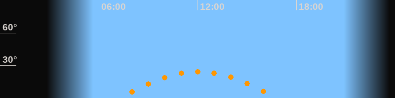 | Höchster Stand (Kulmination) | 12:01 Uhr (h = 24,3°) |