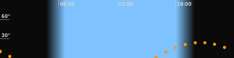 | Untergang | 01:22 Uhr im Südwesten (αAz = 246,6°) |