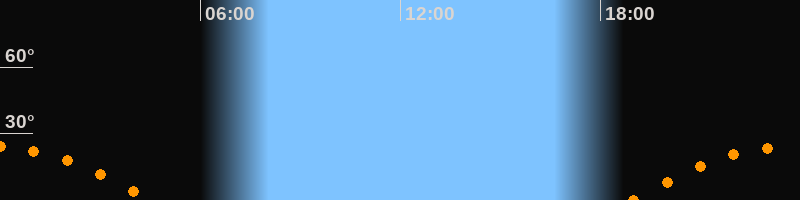 | Untergang | 04:32 Uhr im Südwesten (αAz = 246,6°) |