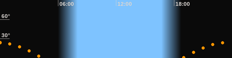 | Aufgang | 18:49 Uhr im Südosten (αAz = 113,4°) |