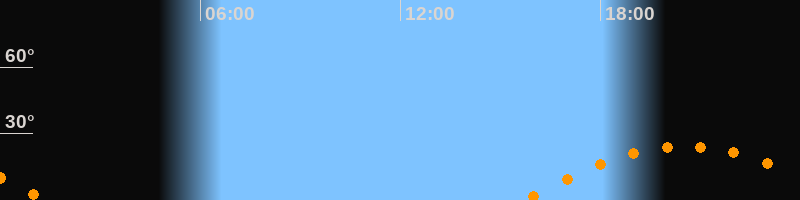 | Untergang | 01:21 Uhr im Südwesten (αAz = 246,6°) |