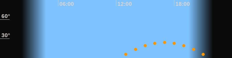| Aufgang | 12:13 Uhr im Südosten (αAz = 113,4°) |