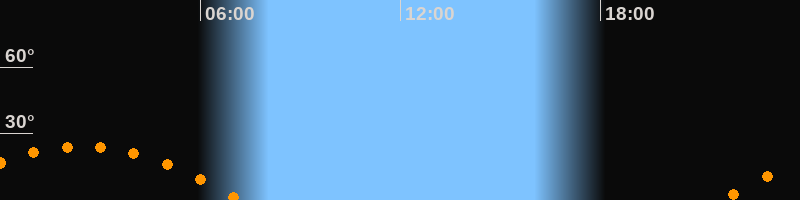 | Untergang | 07:13 Uhr im Südwesten (αAz = 246,6°) |